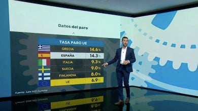 España fue el segundo país de la UE donde más cayó el paro en julio, siete décimas, del 15% al 14,3%, solo superada por Chipre, donde la tasa de desempleo se desplomó hasta 3 puntos porcentuales, del 8,2% del mes de junio, al 5,2% de julio.
