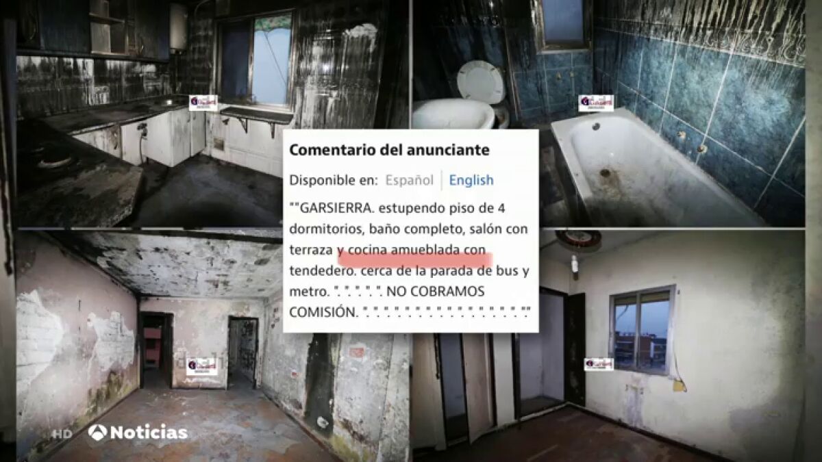 "Estupendo piso de cuatro dormitorios, está cerca del metro y tiene tendedero". Parece el anuncio de un piso normal, pero no. Una vez se empiezan a ver las fotos, uno se da cuenta de que la vivienda se encuentra en un estado deplorable en Madrid.