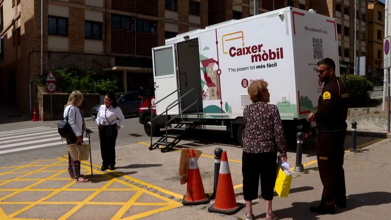 Mas de 100 municipios catalanes reciben la visita de esta entidad bancaria móvil que permite sacar dinero en efectivo, pagar impuestos o cobrar la pensión. El objetivo es ayudar a los más mayores en las zonas rurales.