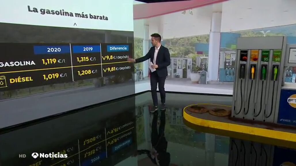 El precio de gasolina y diésel, hasta 10 euros más barato cada depósito en comparación con el año pasado