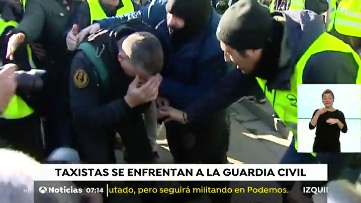 Este lunes, la Guardia Civil evitó que cientos de taxistas entraran por la fuerza en las instalaciones del puerto de Barcelona y un agente resultó herido en el enfrentamiento.