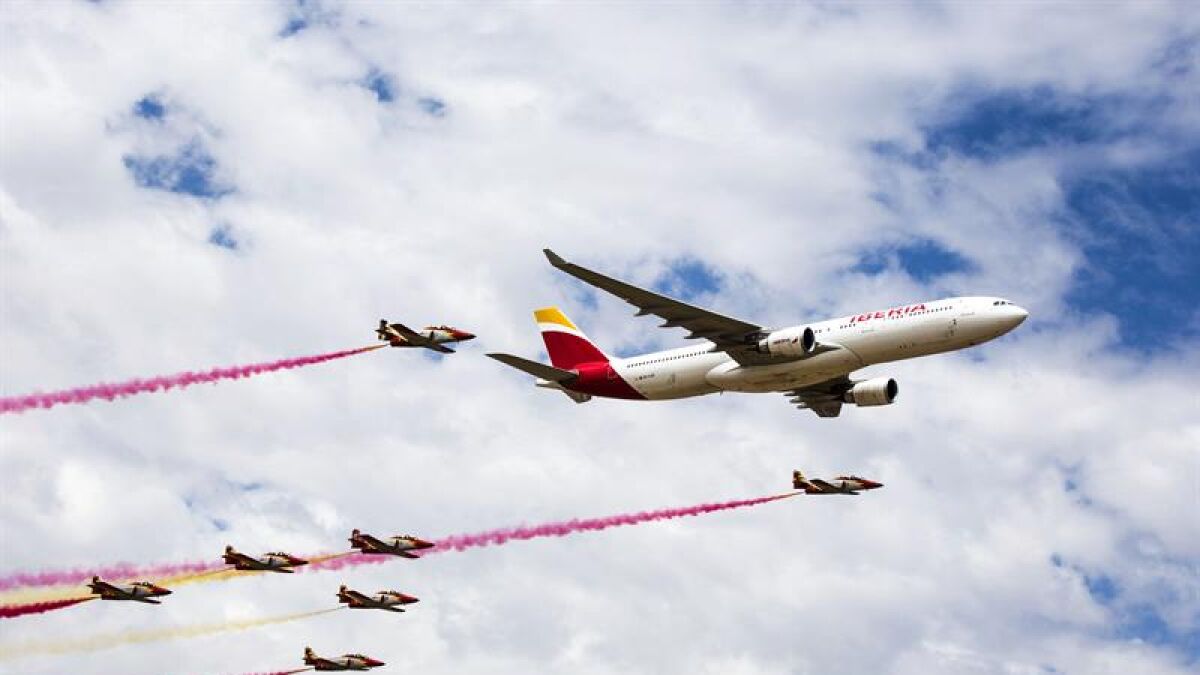 Iberia ha celebrado este domingo el 90 aniversario de su fundación con una exhibición aérea en el aeródromo de Cuatro Vientos, donde operó el primer vuelo de la aerolínea en 1927.