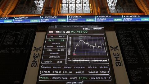 El Ibex 35 rebota un 1,24 %, impulsado por los grandes bancos, y roza los 8.800 puntos