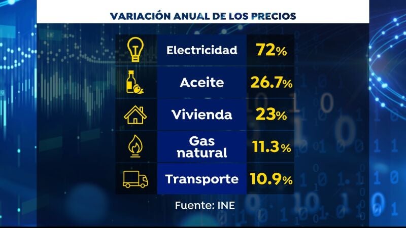 La inflación afecta al encarecimiento de los productos. La electricidad, el aceite o la vivienda, entre los productos que más se han encarecido.