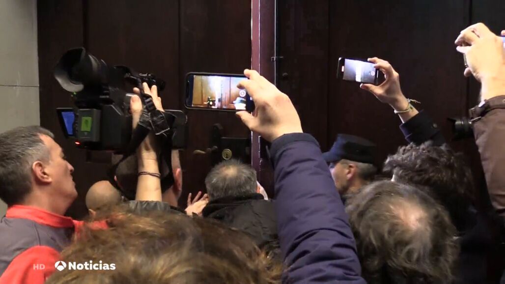 Sin embargo, en torno a las diez y media de la mañana, una veintena de agricultores ha tratado de acceder por la fuerza a su interior. Durante varios minutos han forcejeado con la Policía Foral mientras trabajadores del Parlamento trataban de cerrar la puerta del edificio. Frente a ella se ha formado una montonera que finalmente ha sido rechazada entre golpes y empujones. La puerta ha conseguido ser cerrada dejando a los protestantes en el exterior.