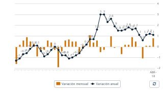 Hay que tener en cuenta que la Semana Santa, que suele impulsar el precio de los servicios turísticos, se celebró en 2017 en abril y este año en marzo. La tasa interanual de abril es la vigésima tasa positiva que encadena el IPC interanual e implica que los precios son hoy un 1,1% superiores a los de hace un año.