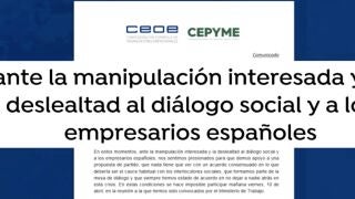 La patronal ha desmentido que el Gobierno haya negociado con ellos la renta mínima. En un duro comunicado, la CEOE les acusa de "manipulación interesada" y deslealtad, por lo que no acudirán mañana a la reunión con la Ministra de Trabajo. Aunque dice compartir el interés por proteger a los ciudadanos desatendidos, la patronal cree que las medidas deberían ser consensuadas.