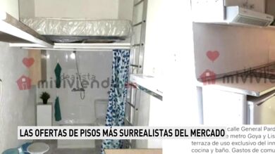 Un piso en Madrid en el exclusivo barrio de Salamanca se alquila por 400 euros al mes: tiene la cama, literalmente, sobre la ducha. Hay otro que se vende con la puerta tapiada y no se puede ver antes de comprarlo. Por él habría que pagar a ciegas 172.000 euros.