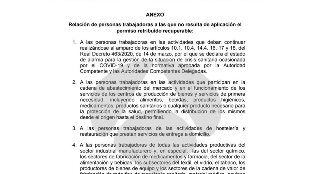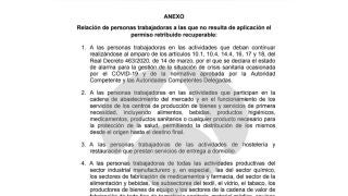 Dentro de estos grupos, la lista completa a la que ha accedido Antena 3 Noticias contempla como actividades esenciales las siguientes: