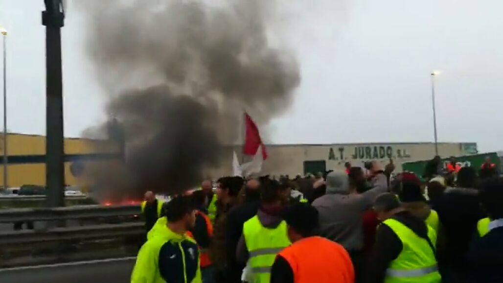 Los agricultores han cortado la autopista de Jaén a primera hora de este jueves con la quema de neumáticos y entre gritos de "estamos cansados".