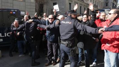 La protesta ha motivado un aumento del despliegue policial en los alrededores de la Cámara Baja, y se ha cerrado el acceso por la Carrera de San Jerónimo, por lo que los diputados que a esta hora quieren abandonar el edificio tienen que hacerlo por la parte trasera.