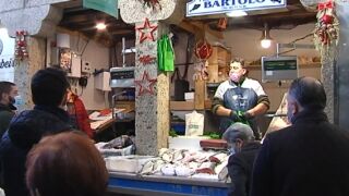 En concreto, los vendedores del mercado de Abastos de Santiago de Compostela manifiestan que, en líneas generales, han cumplido sus expectativas con respecto a la primera parte de las fiesta de esta Navidad 2020, tanto a nivel de ventas como en los precios del producto.