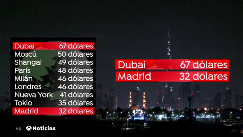 La ciudad más cara más cara para salir de compras es Dubái, ya que es la ciudad más cara del mundo. Un vestido puede costar en Madrid unos 32 dólares -alrededor de 30 euros-. Ese mismo vestido cuesta en Dubái unos 67 dólares -60 euros- algo más del doble.