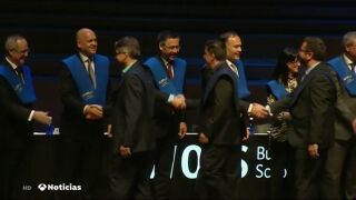 Estudiantes de 72 países han venido a España para graduarse en la OBS Business School. Bartomeu ha sido el padrino de la promoción de este año.