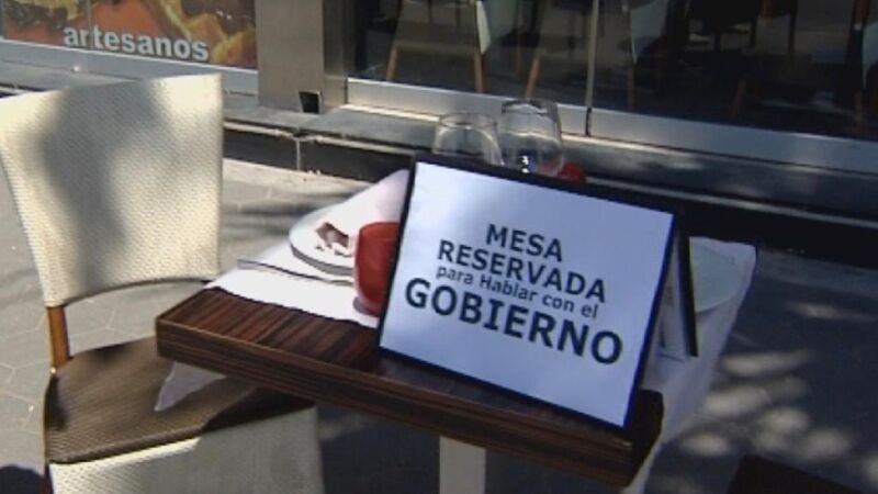 Carteles de "mesa reservada para hablar con el gobierno", es la iniciativa del sector hostelero para llamar la atención del Gobierno, una invitación a que Pedro Sánchez se siente a dialogar.