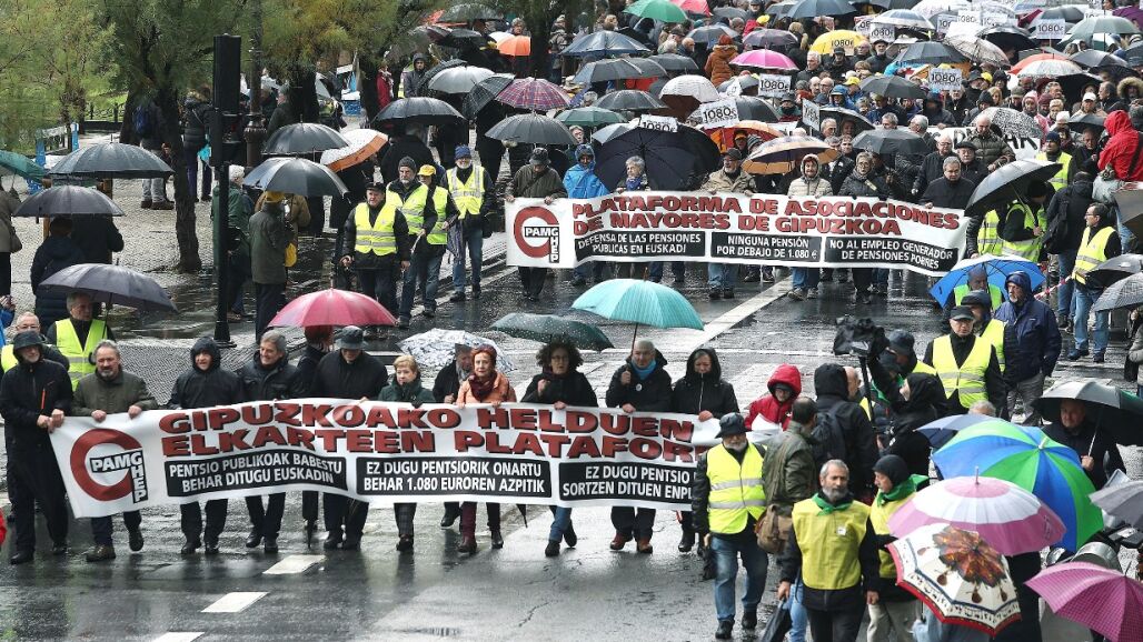 Unas 20.000 personas han salido a las calles del País Vasco para defender sus derechos y exigir una subida de la pensión mínima.