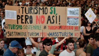 Este domingo, entre 10.000 personas según la Delegación del Gobierno y 50.000 según los organizadores, han salido a las calles de Palma de Mallorca para protestar contra la masificación turística en la isla. Los manifestantes denunciaron la caída de los salarios, la pérdida de calidad de vida, los atascos en carreteras y playas, el ruido, el consumo del territorio y el precio de la vivienda y el alquiler.
