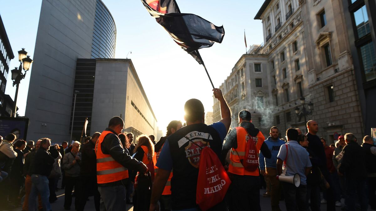 Miles de taxistas se manifiestan para pedir que se apruebe el decreto ley que regula las VTC