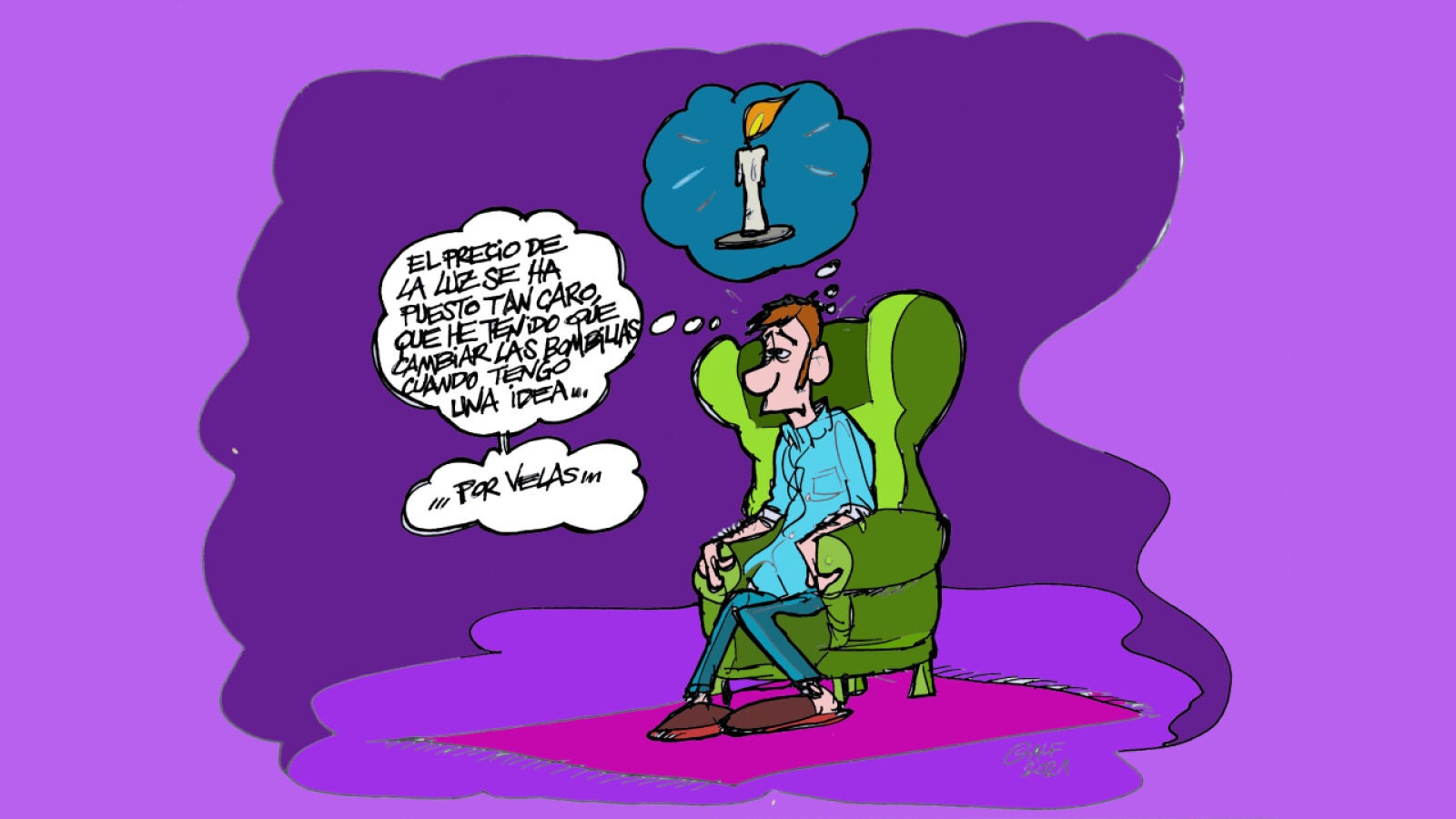 "El precio de la luz se ha puesto tan caro, que he tenido que cambiar las bombillas cuando tengo una idea... por velas", así refleja nuestro ilustrador esta nueva tarifa que se ha convertido en centro del debate esta semana.