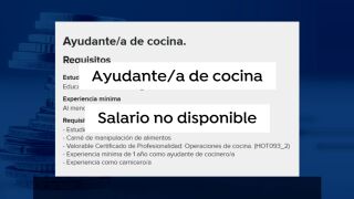 Llamamos a una cadena de hoteles y preguntamos por una oferta que acabamos de encontrar en Internet: ayudante de cocina, en la que no aparece el salario. Como ésta, ocho de cada diez ofertas de trabajo ocultan lo que podríamos llegar a cobrar.
