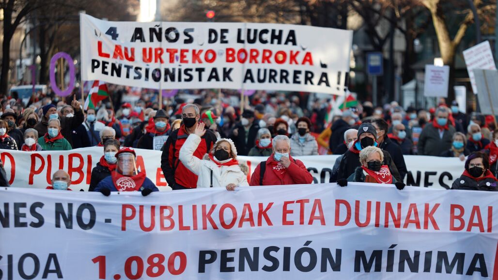 Miles de personas han participado en las manifestaciones convocadas en el País Vasco y Navarra por los movimientos de pensionistas contra una reforma del Gobierno de PSOE y Podemos. La consideran insuficiente para garantizar unas pensiones públicas "dignas".