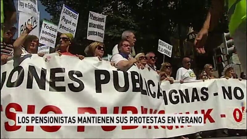 Este lunes miles de pensionistas han vuelto a salir a las calles de Bilbao para reivindicar una vez más unas pensiones "dignas". Esta vez, la protesta se produce en plenas fiestas de la capital vizcaína, por lo que la convocatoria ha transcurrido en un ambiente festivo.