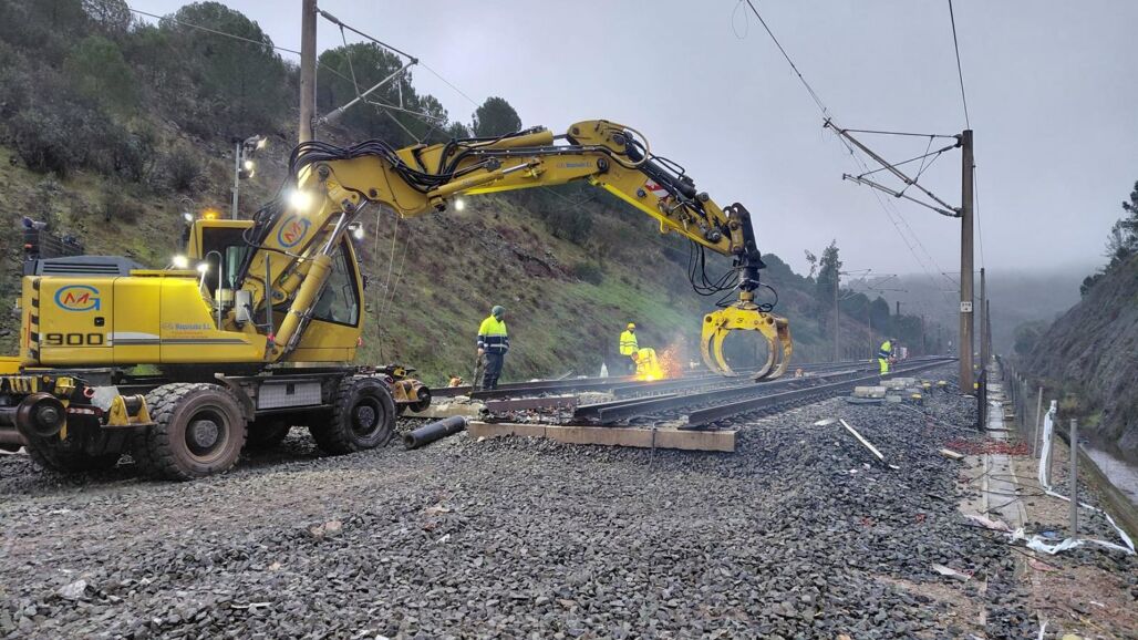 22 de enero. Cuatro días después del accidente, Adif se lleva restos de soldaduras y raíles a su base de Hornachuelos.