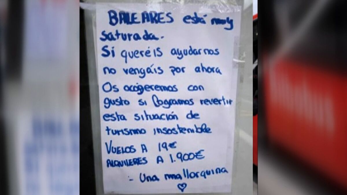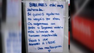 Este problema es cada vez más frecuente en Baleares, por lo que los vecinos no quieren que les visiten más turistas “por ahora”. Las compañías de vuelo ‘low cost’ anuncian viajes a la isla desde 19 euros, lo que ha desatado la ira de una joven. Se queja de que Baleares está muy saturada, y mientras se ofrecen vuelos a 19 euros, los alquileres están a 1900. “Si queréis ayudarnos no vengáis por ahora”, reza la nota que una joven mallorquina ha dejado en una marquesina de Bilbao.