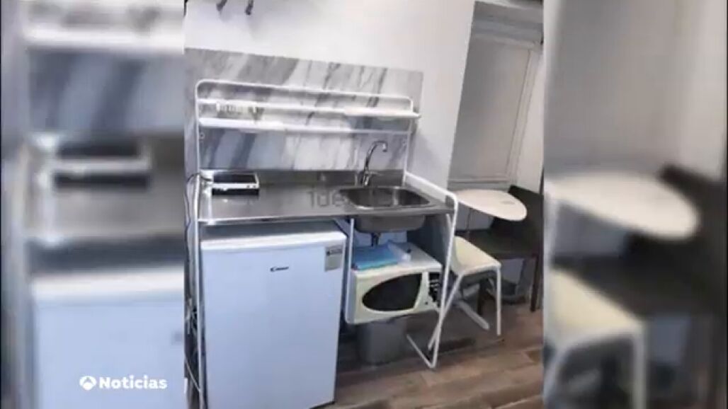 Tiene vistas panorámicas al resto del estudio porque ni siquiera tiene paredes que lo separen. Un cristal translúcido es lo único que da un poco de privacidad. Te puedes duchar con vistas a lo que dicen que es una cocina, pero en realidad es un fregadero con un pequeño frigorífico y un microondas. Tiene 10 metros cuadrados, se ubica en el centro de Madrid y está a la venta por 165.000 euros. "Es vergonzoso, no sé como alguien puede plantearse vivir ahí", nos cuenta David, un joven murciano que vive en la capital por trabajo.