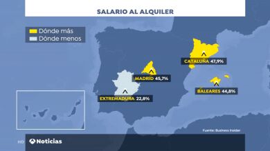 Las Comunidades Autónomas que más gastan en alquileres son Madrid, Cataluña y las Islas Baleares. La que menos, Extremadura. El 37% de las familias españolas dedican casi el 40% de sus ingresos en el alquiler.