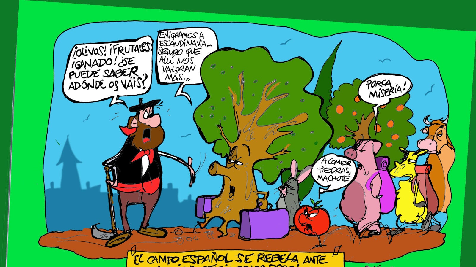 Nuestro ilustrador Alfredo Boto-Hervás refleja con ironía cómo se rebela el campo ante la injusticia de los precios de los productos. Protestas que ya están llegando a las grandes ciudades para reclamar lo que consideran unos precios justos.