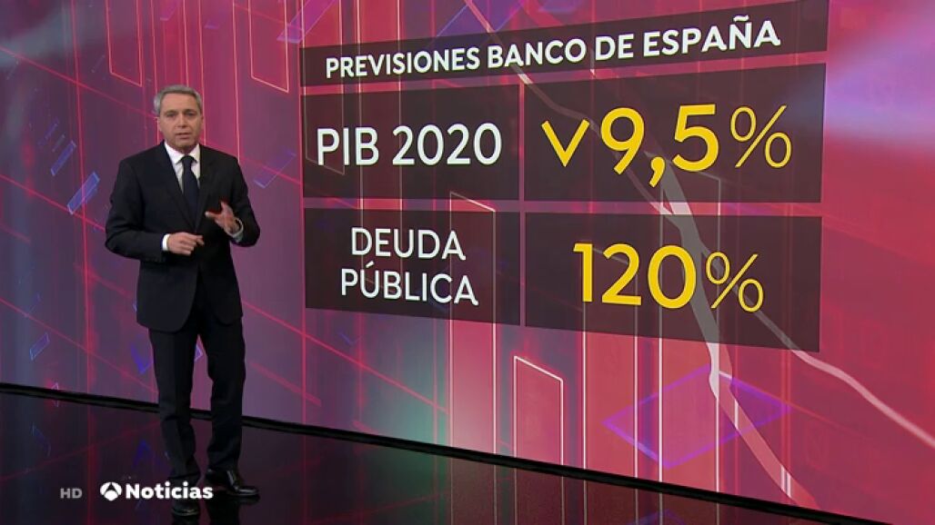 Su gobernador, Pablo Hernández de Cos, descarta el escenario económico más optimista y se sitúa, en el mejor de los casos, en una caída del PIB este año de, como mínimo, el 9,5%. También se corrige la estimación de cuánto subirá la deuda pública: llegaremos al 120% del PIB. Es decir, debemos todo lo que ingresamos y un 20% más.