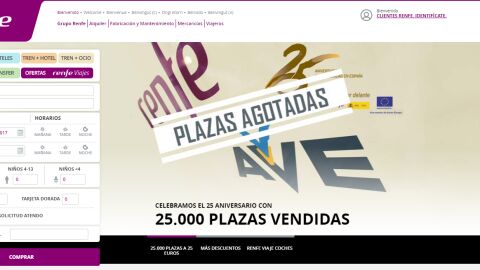 Renfe ha puesto a la venta en la noche del viernes al sábado, a las 00.00 horas, estas plazas, que en el caso de la venta por internet aparecían identificadas con el símbolo '25Ave'. El número de consultas de viaje en renfe.com ha superado las de 3,6 millones hasta el cierre de la promoción.