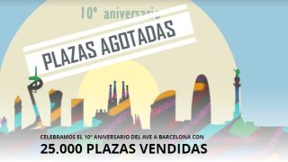 Renfe ha vendido desde las 00.00 horas de este domingo, en menos de una hora -56 minutos-, los 25.294 billetes promocionales a 25 euros con los que ha querido celebrar el 10º aniversario de la llegada de la alta velocidad a Barcelona, según ha informado la compañía en un comunicado.
