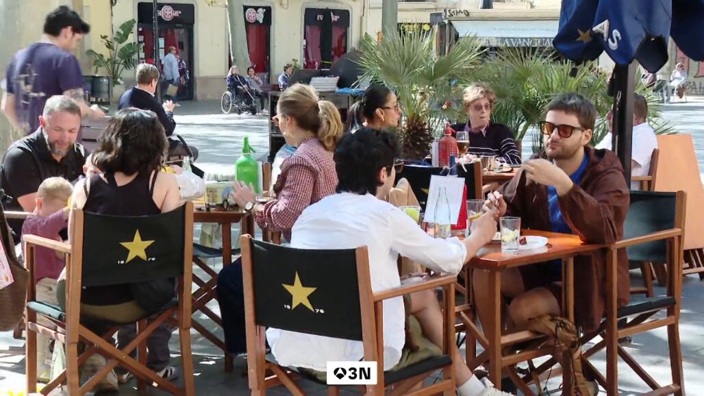 "Comemos por los ojos, pedimos demasiado y luego sobra mucho", asegura un vecino que come junto a su familia en una terraza de Barcelona.