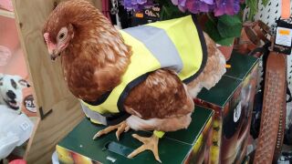 Revolución en la granja, gallinas con chalecos reflectantes