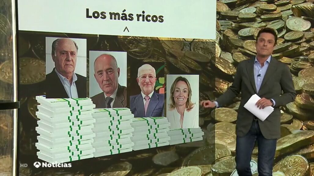 Los más ricos entre los ricos de España, las 200 personas que tienen más dinero en España suman ya 230.000 millones de euros. El primero en la lista de los más ricos sigue siendo Amancio Ortega (Inditex), seguido de Rafael del Pino (Ferrovial), Juan Roig (Mercadona) y Sol Daurella (Coca cola) que se sitúa como la primera mujer.