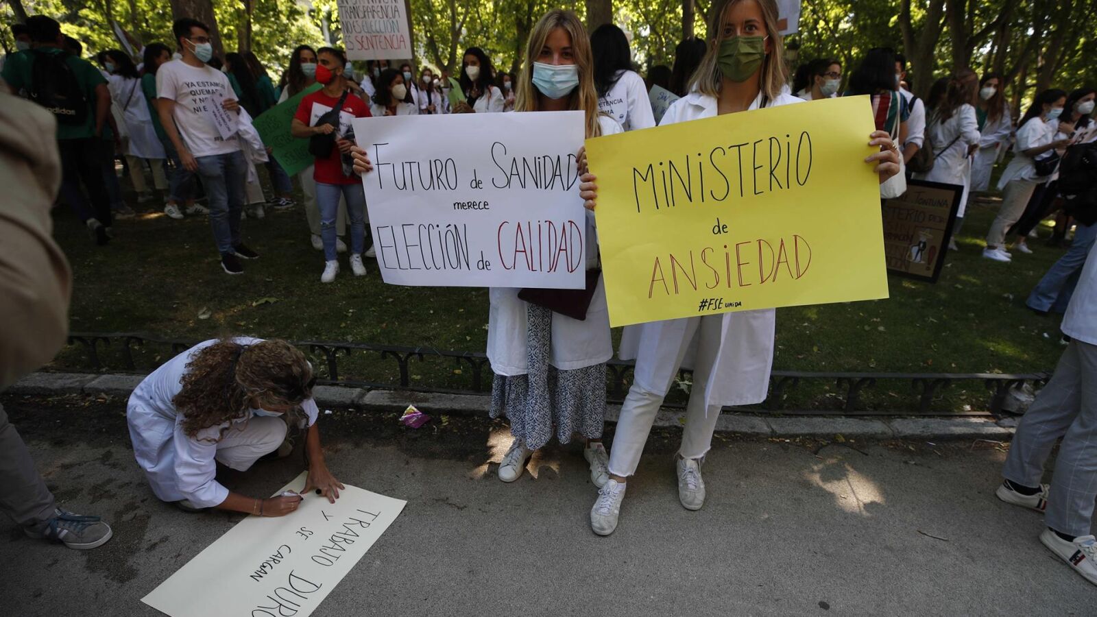 Los MIR se han manifestado durante varios días en toda España demandando la adjudicación de plazas disponibles a tiempo real. Precisamente, esta misma mañana se celebraba una estas concentraciones en Madrid antes de la última negociación entre Sanidad y los representantes de los residentes. Han conseguido rebajar el número de personas que elegirán por turnos su especialidad, pero no han obtenido el visto bueno ha hacerlo de manera presencial, que era una de las principales quejas.