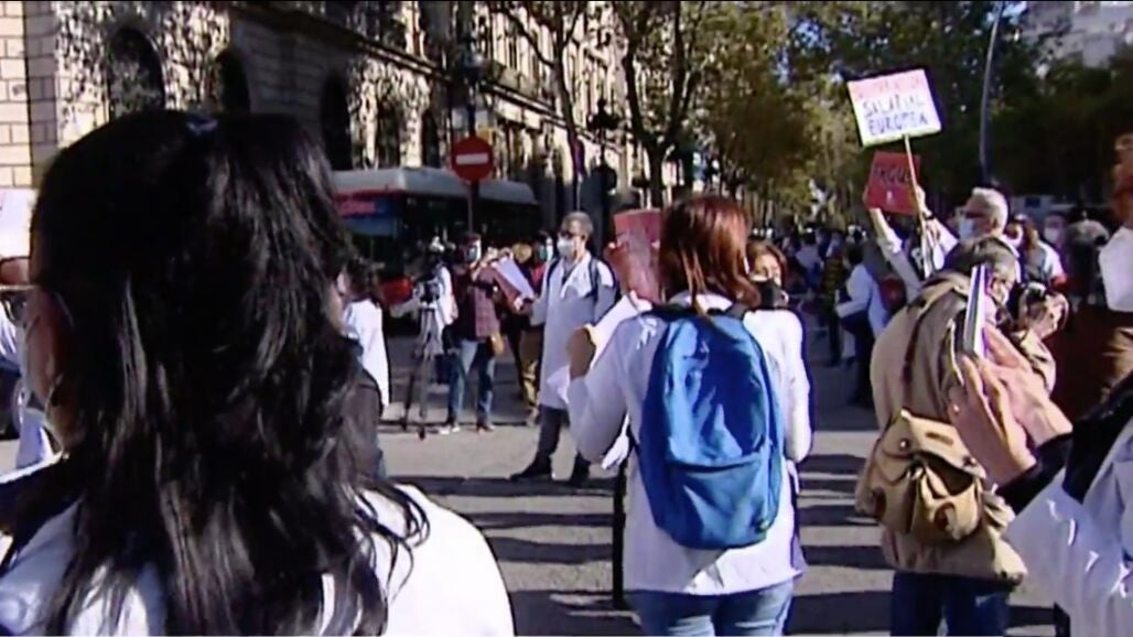 Los sanitarios de centros de Salud y hospitales han vuelto a concentrarse hoy en distintos puntos de España. Protestan por la sobrecarga de trabajo y la escasez de personal.