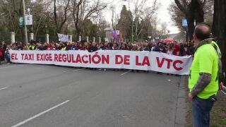 A las 18 horas ha arrancado la manifestación que discurrirá de Atocha a la Plaza de Cibeles bajo una cabecera con la pancarta 'El taxi exige regulación de la VTC', una protesta que se produce tras la desconvocatoria de la huelga indefinida del sector y que cuenta con el apoyo de una treintena de colectivos.