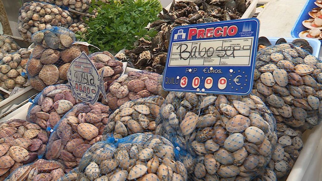 "Hay escasez de todo tipo de marisco y también de pescado", explica Nuria González, del puesto Mardelia de la Plaza de Abastos compostelana. "No se puede salir a faenar, hay cofradías que han parado la actividad y hay lonjas que no están funcionando. El marisco de fuera, que podría venir de Portugal o de Francia, tampoco está llegando porque allí están como nosotros o peor. Lo poquito que hay está por las nubes".