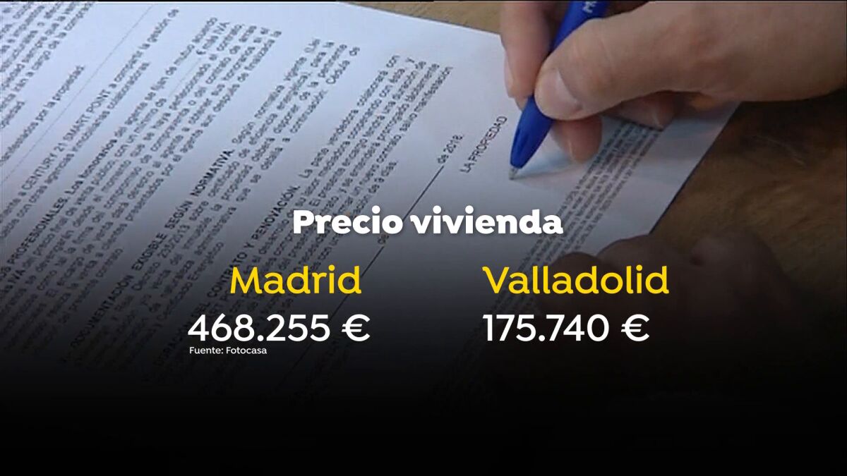 Por eso también José Alberto hace ese mismo trayecto. "Puedo llevar una vida cómoda en Valladolid, cosas que en Madrid es más difícil", asegura. Solo hay que fijarse en los precios. Comprar una vivienda en Madrid roza roza el medio millón, en Valladolid casi 300 mil euros menos.