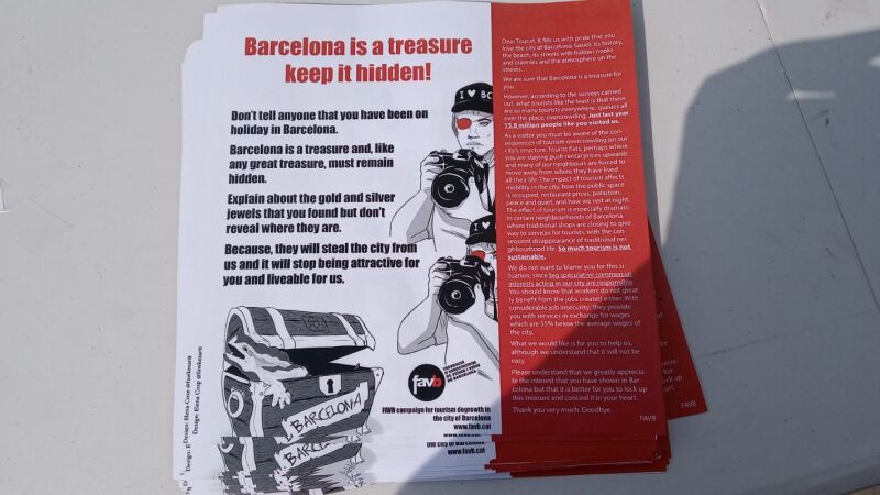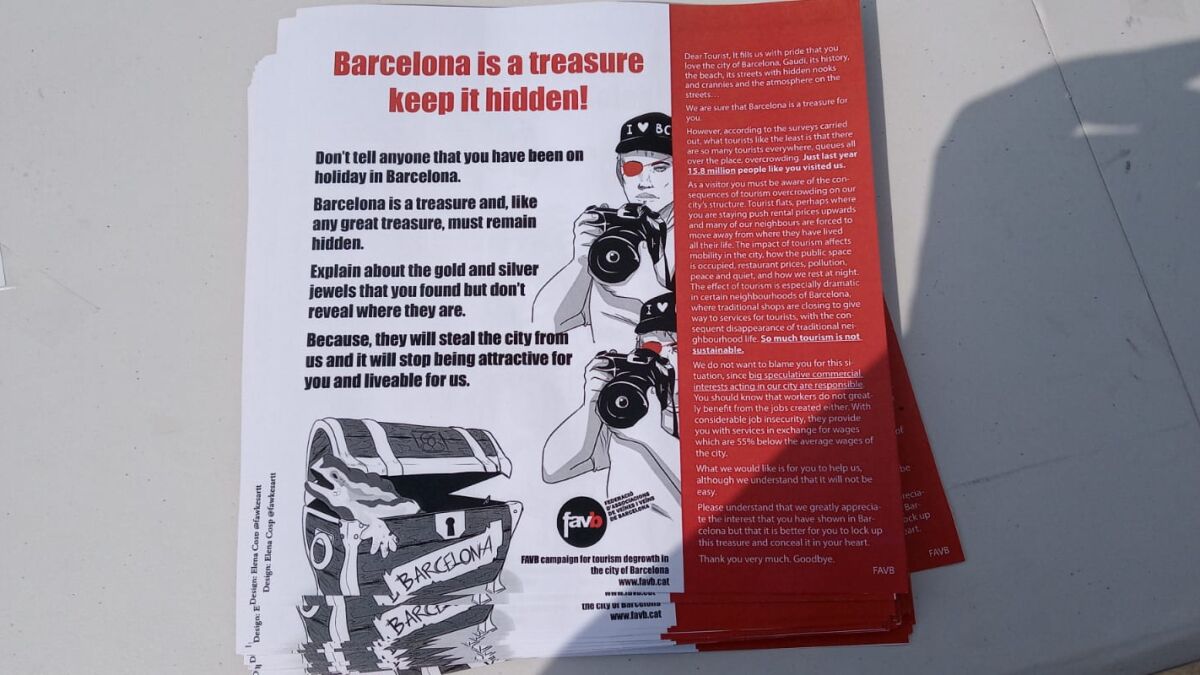 La campaña tiene un mensaje irónico, en las octavillas se puede leer: "No digas a nadie que has estado de vacaciones en Barcelona. Si para ti Barcelona es un tesoro, tienes que esconder el mapa del tesoro".