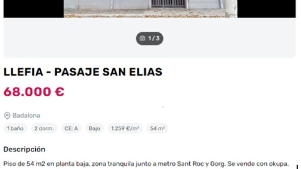 Estos anuncios cada vez son más frecuentes en los diferentes portales web de venta de viviendas. Además, en algunos de ellos se especifica que la 'desokupación' del inmueble correrá a cargo de la persona que lo compre.