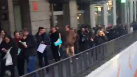 Miles de personas hacen cola para optar a uno de los más de cien puestos que oferta el hotel VP Plaza España Design ante su apertura