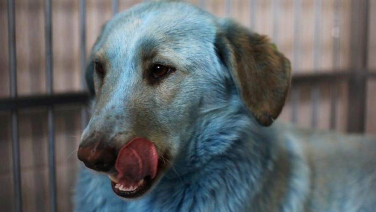 Son azules, sí, azules. Estos perros han aparecido en una vieja fábrica abandonada de una localidad rusa a 400 kilómetros de Moscú con su pelaje teñido de azul. Según un veterinario que los ha visitado los animales se encuentran en buen estado, activos, tienen ganas de comer y beber. Sus analíticas son normales.