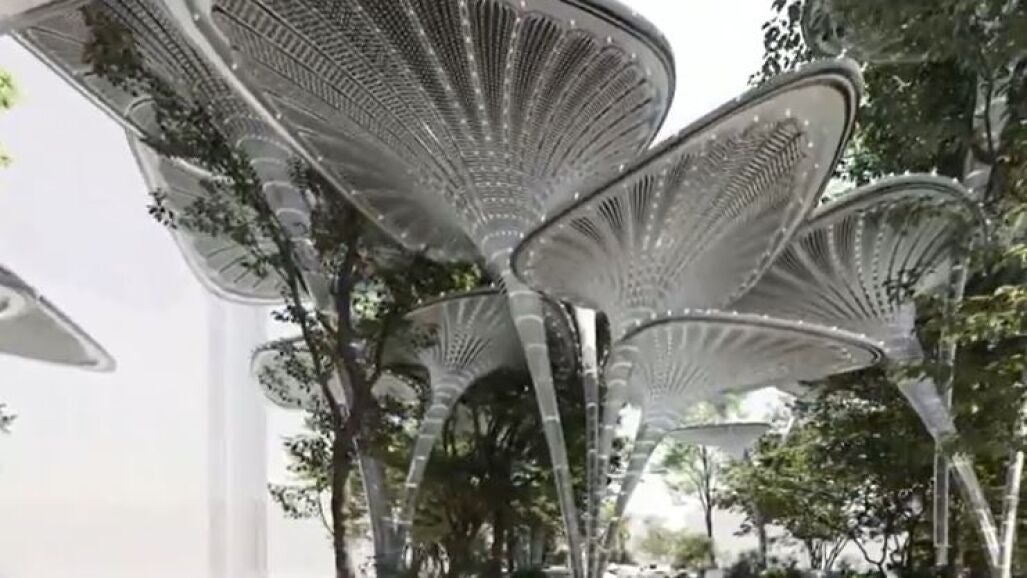 Así son las palmeras metálicas que rocían agua para luchar contra el calor sofocante