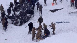Los equipos estaban buscando los cuerpos de dos personas que habían quedado desaparecidas al caer un alud sobre una máquina quitanieves y un minibus que transitaban por una carretera nevada.