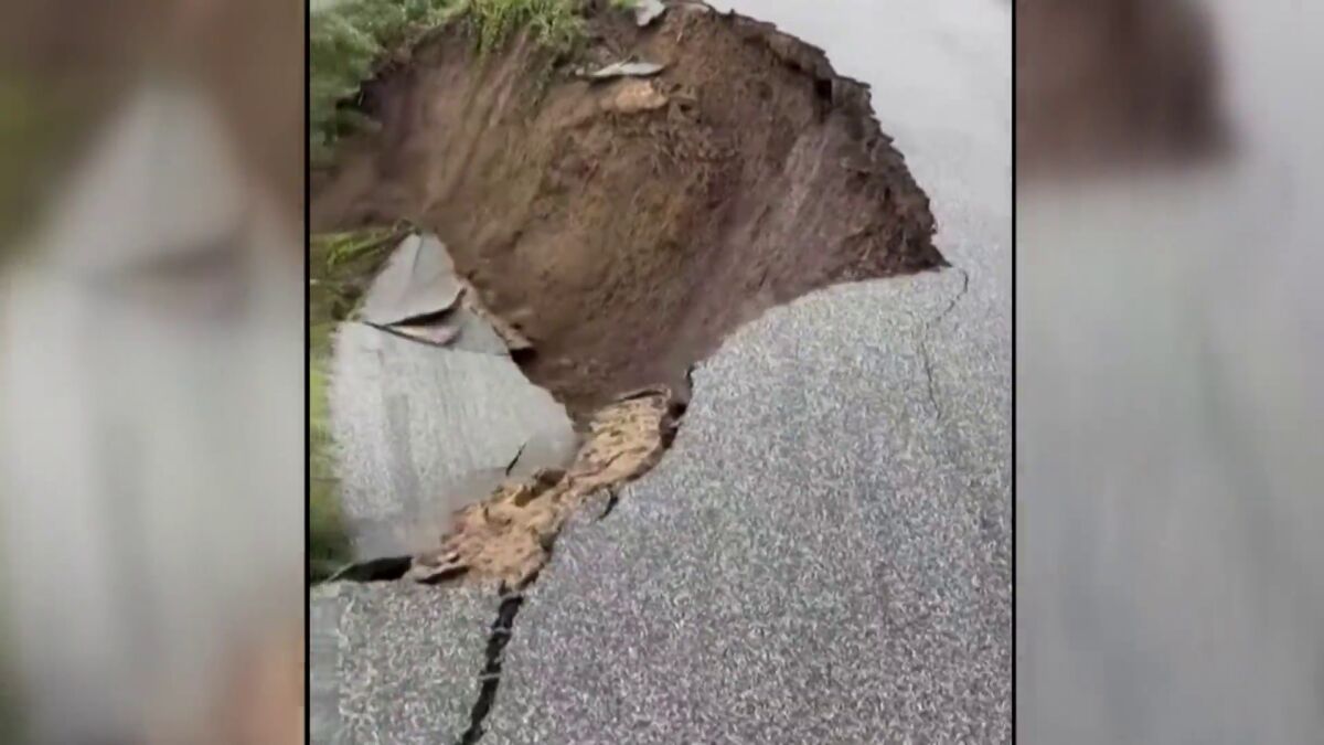 Una carretera se parte por la mitad a causa del temporal en California