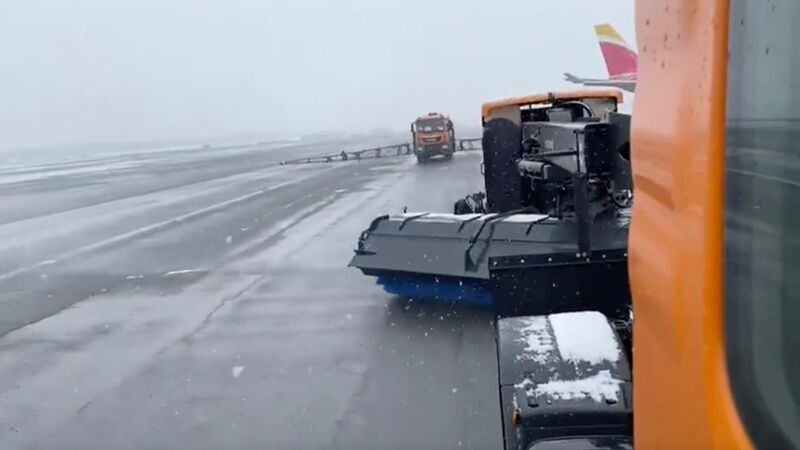 AENA ha comunicado que "prosiguen las labores de limpieza de pistas para recuperar la operativa lo antes posible". Mientras cientos de pasajeros continúan "atrapados" en el aeropuerto en el interior de los aviones.